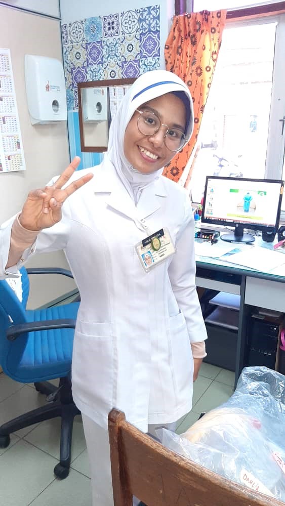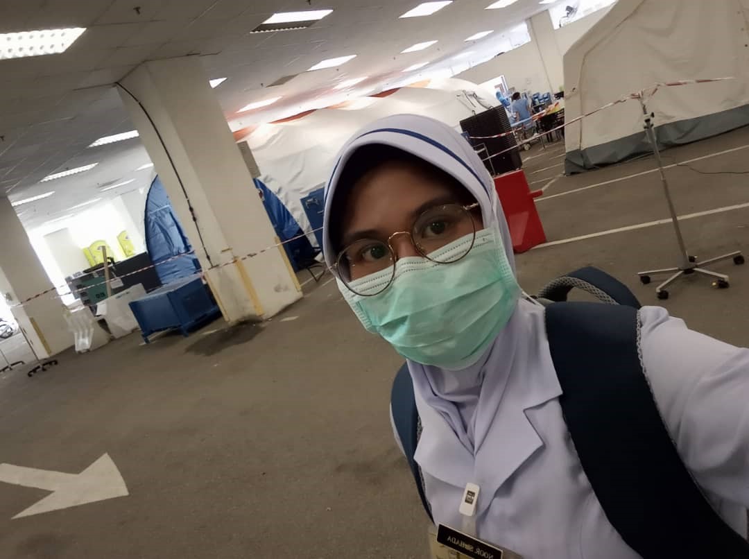 Ketika ditugaskan di Hospital Sg.Buloh, saya diletakkan di pusat saringan. Setiap hari, memang ramai orang yang datang buat saringan. Kami bekerja mengikut syif. Boleh saya katakan sepanjang tugasan itu, kami tiada waktu rehat. Kalau ikut jadual normal, jadual kerja kami masuk pukul tujuh pagi, balik jam dua petang. Namun, sekarang ini kami terpaksa balik jam empat petang. Tugas kami di pusat saringan adalah membantu doktor megambil sampel dan mendaftarkan pesakit. Dan, sekarang saya ditugaskan di Hospital Besar Ipoh di bahagian wad menjaga pesakit positif Covid-19. Saya tidak nafikan ia lebih mencabar kerana perlu memakai Personal Protective Equipment (PPE) dan keselamatan perlu dititikberatkan sepanjang masa.