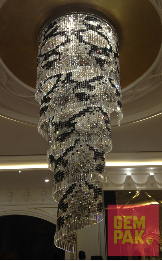 Ruang tamu utama kediaman ini diisi dengan candelier berjuntai setinggi dari siling mencecah lantai.