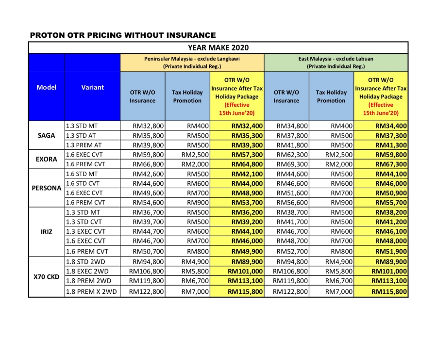 Ini senarai harga bagi model Proton selepas pengecualian cukai jualan: