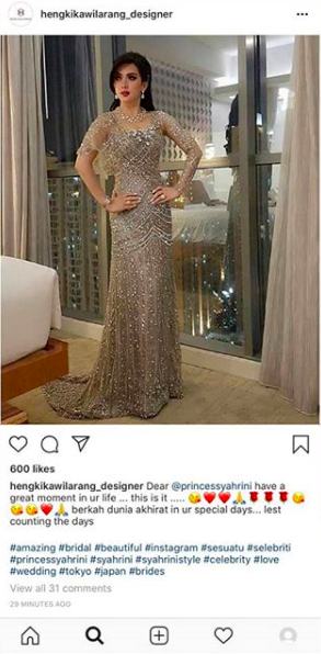 Melalui akun Instagram Henkikawilarang_designer pula, perancang busana itu tidak segan segan memberi doa buat Syahrini pada majelis perkahwinannya kelak.