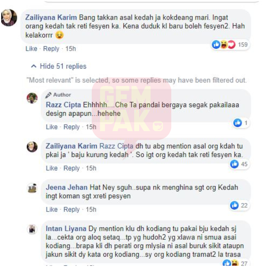 Rata-rata warganet yang ‘menyerang’ Razz mempertikai kenyataan lelaki tersebut yang menggambarkan seolah-olah warga Kodiang seperti tidak tahu berfesyen dan itu merupakan satu penghinaan.