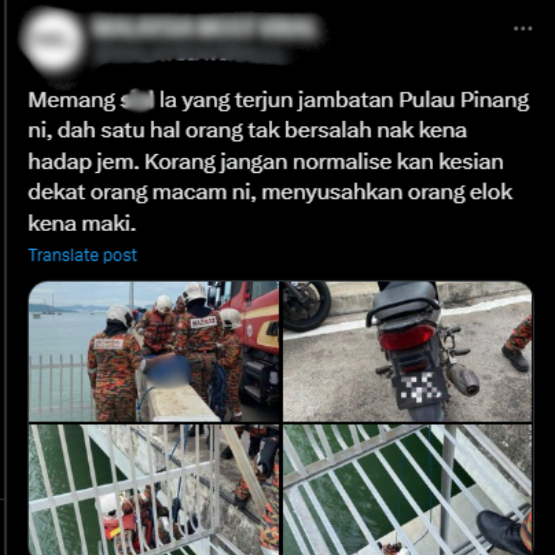 Tindakan seorang pengguna X yang mencela kejadian cubaan bunuh diri seorang individu di salah sebuah jambatan yang terkenal di Malaysia menjadi sasaran serangan netizen.