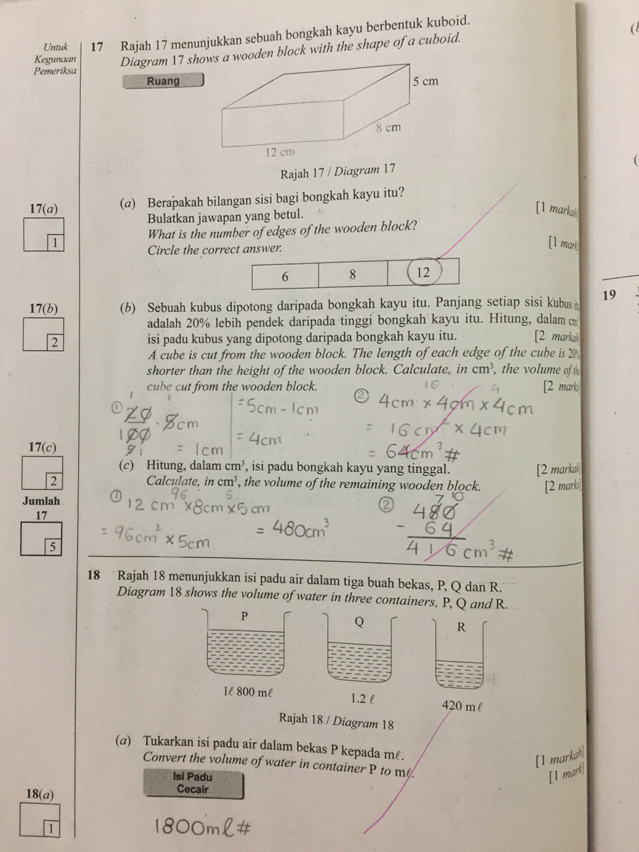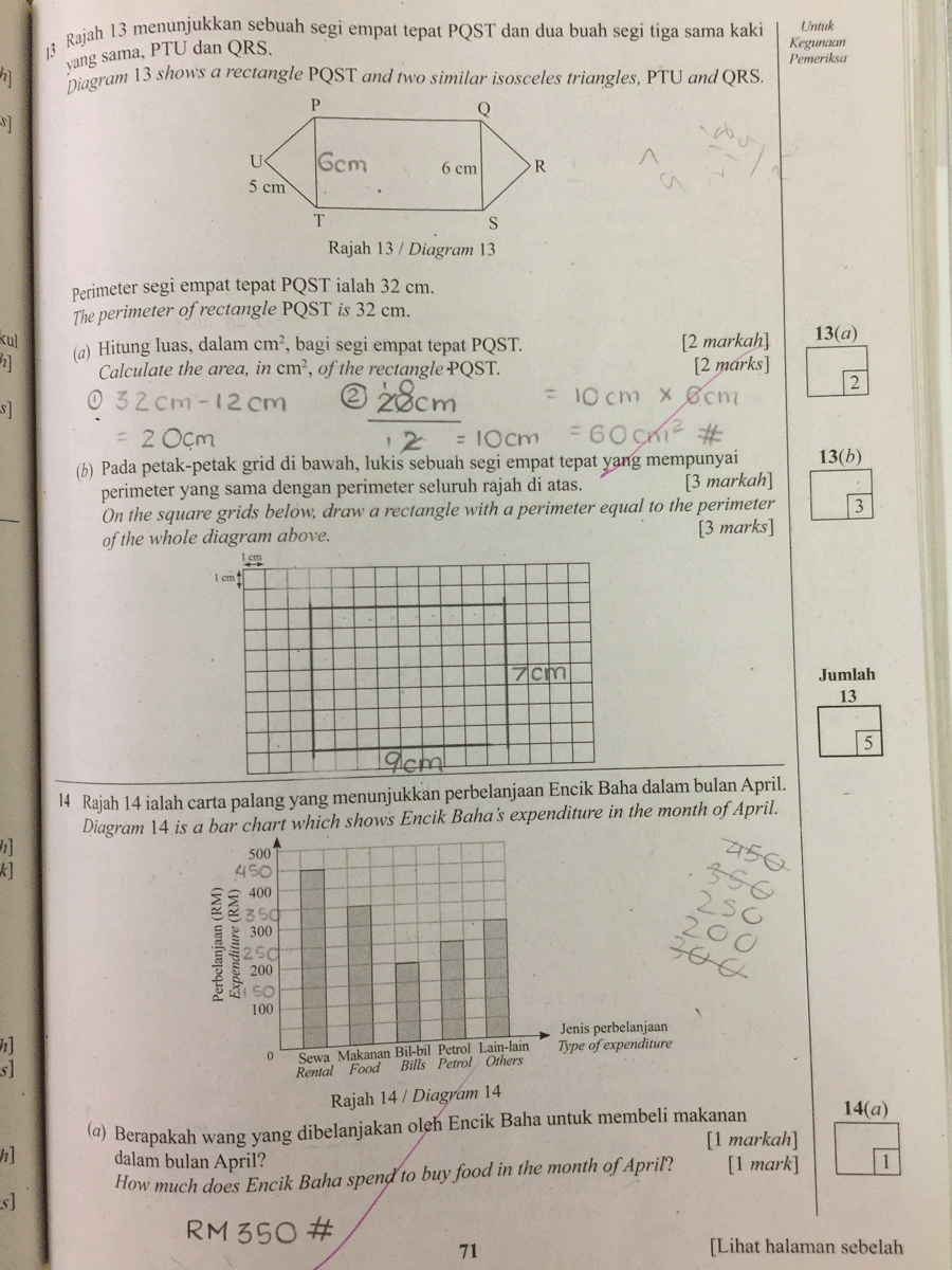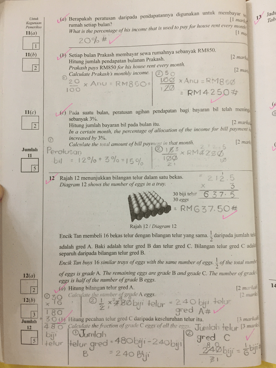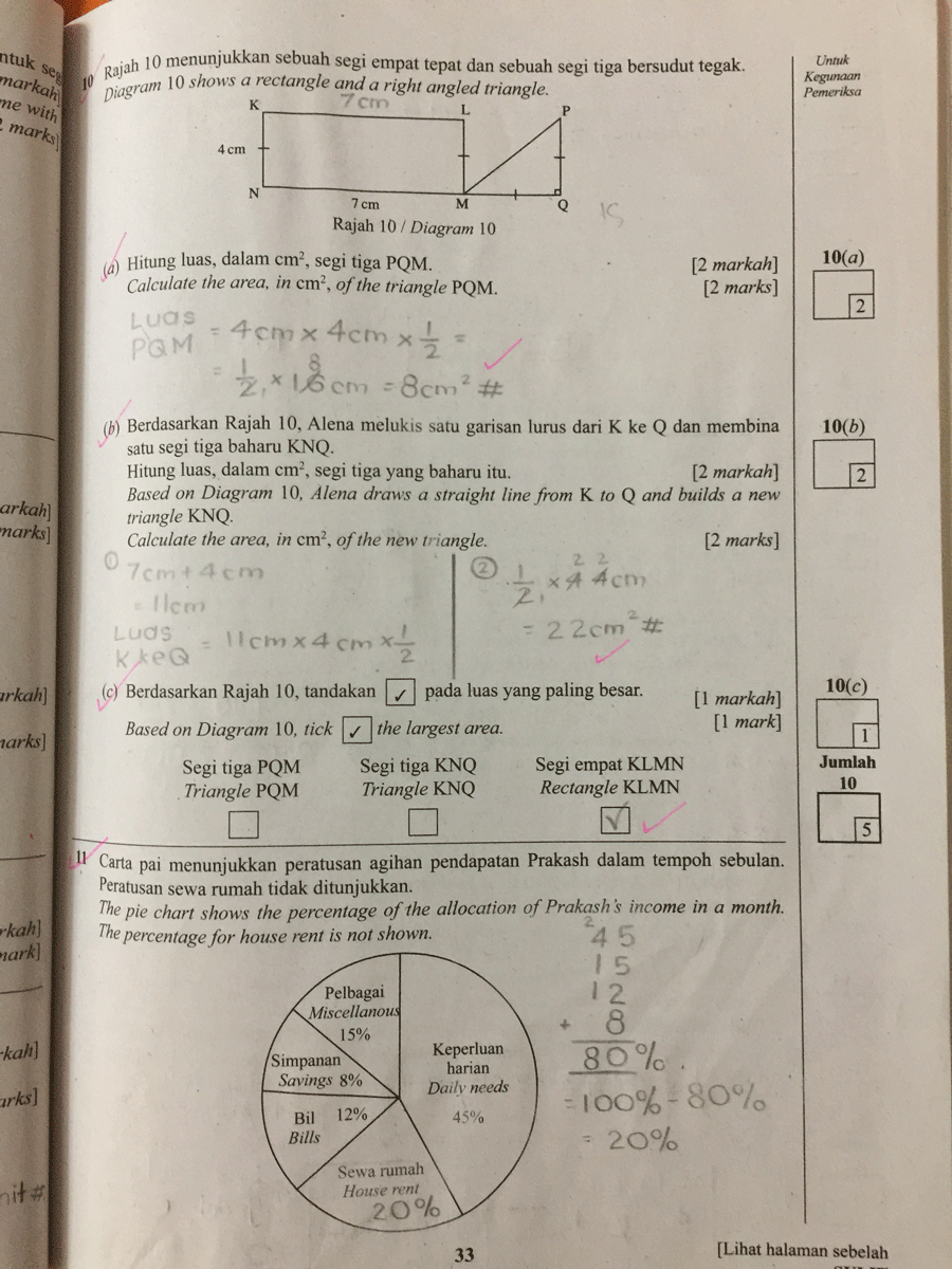 Saya pernah membawa jawapan Matematik Kertas 2 milik Rania untuk ditunjukkan kepada saudara suami — Jurulatih Utama Matematik peringkat Kebangsaan yang mempunyai pengalaman bertahun-tahun menanda kertas Matematik UPSR. Saya tanya pandangannya, "Topek, apa lagi Rania patut betulkan, supaya cuainya berkurangan?"