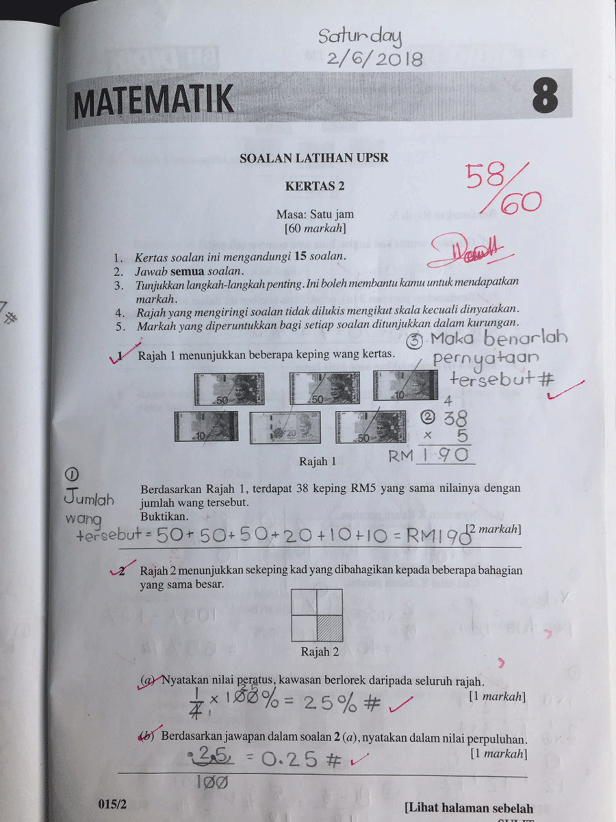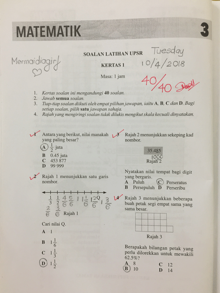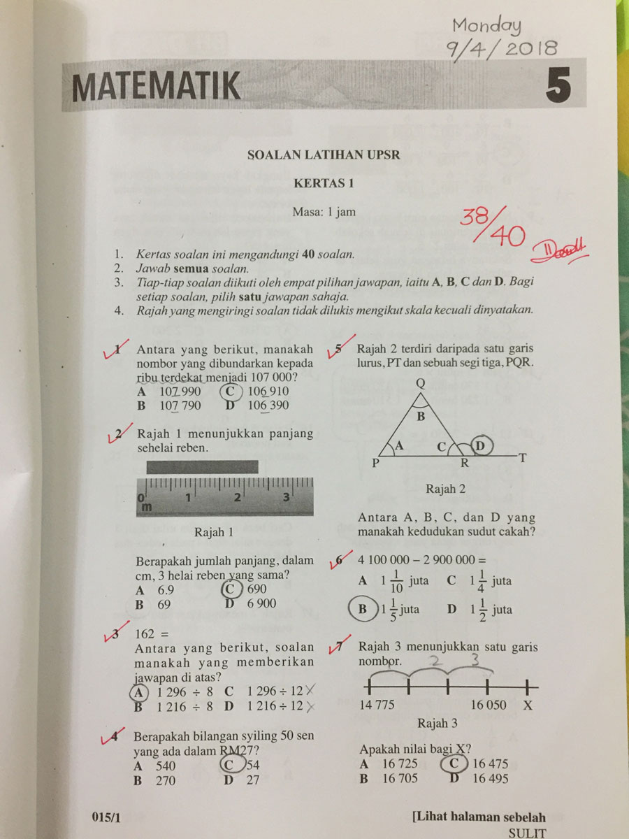 25 Contoh Sebenar Modul Soalan Matematik UPSR Kertas 1 dan Kertas 2 yang Boleh Anak Anda Rujuk Sebagai Panduan
