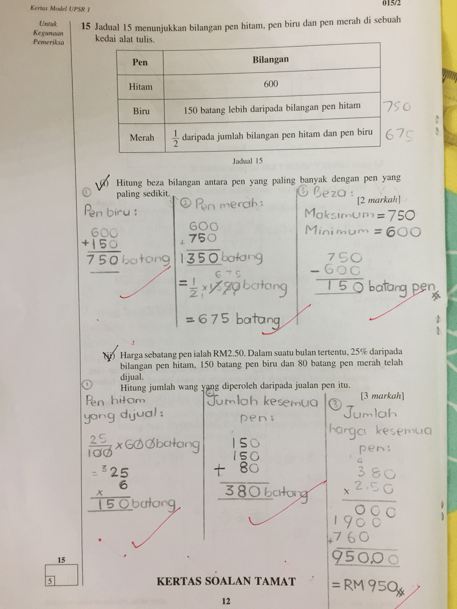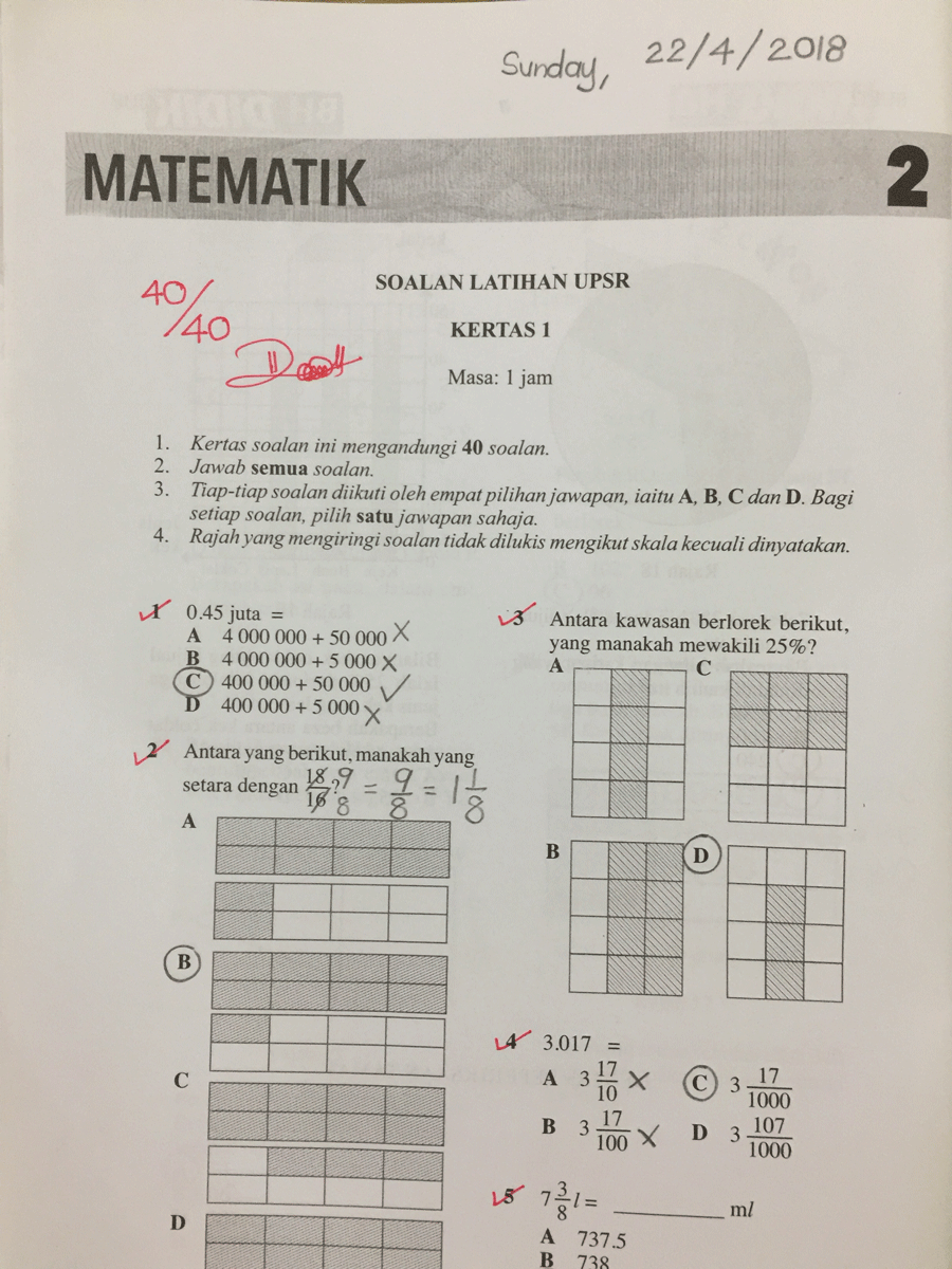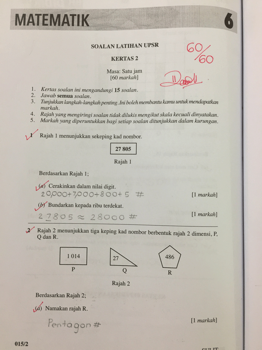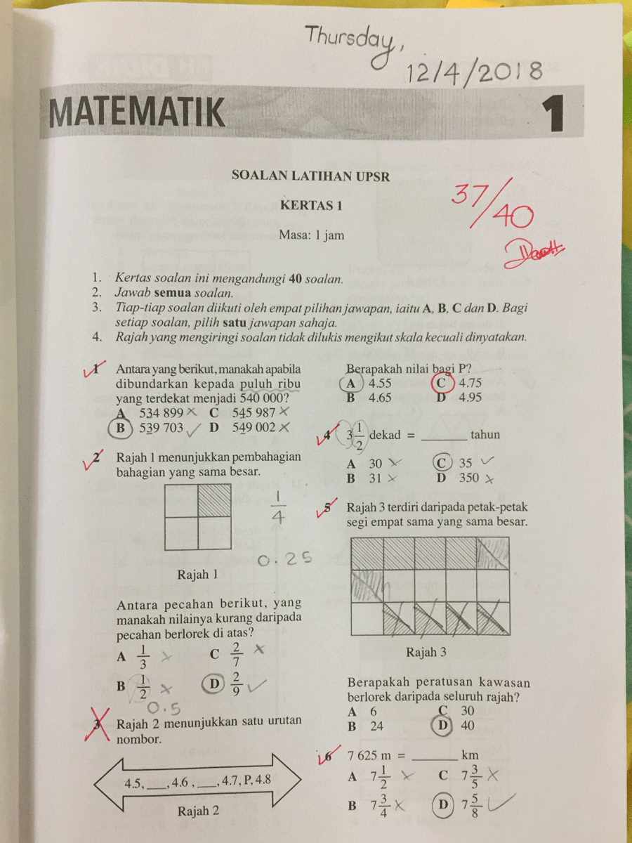 25 Contoh Sebenar Modul Soalan Matematik UPSR Kertas 1 dan Kertas 2 yang Boleh Anak Anda Rujuk Sebagai Panduan