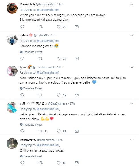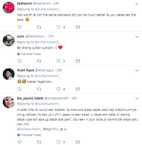 Malah, ada yang menasihati Sufian untuk bangkit dan memberikan sepenuh fokus untuk Anugerah Juara Lagu ke-32 yang akan berlangsung awal Februari nanti.