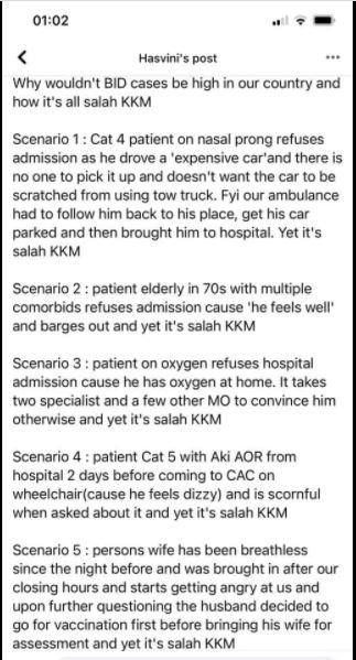 Namun ada juga kes pesakit dah patuh arahan CAC suruh ke hospital, namun di reject apabila sampai disana. Apabila datang semula dah terlalu hypoxic. Mujur bukan hospital saya. Kes begini terpencil, tetapi tolong buat report kalau ada.