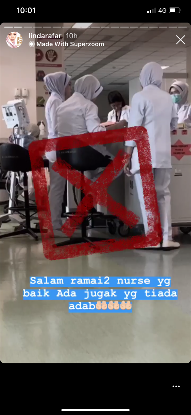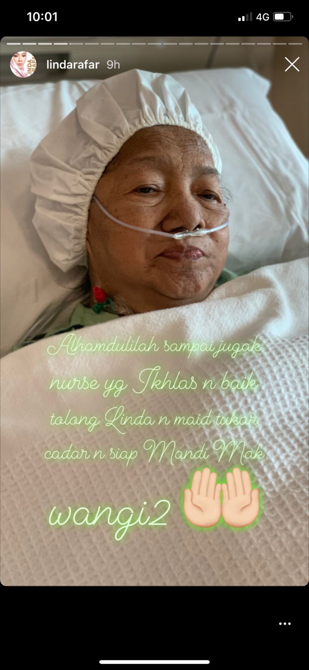 Ahli kumpulan Elite, Linda Rafar meluahkan rasa kesalnya terhadap layanan yang diterima dari seorang jururawat yang bertugas di hospital ibunya dirawat.
