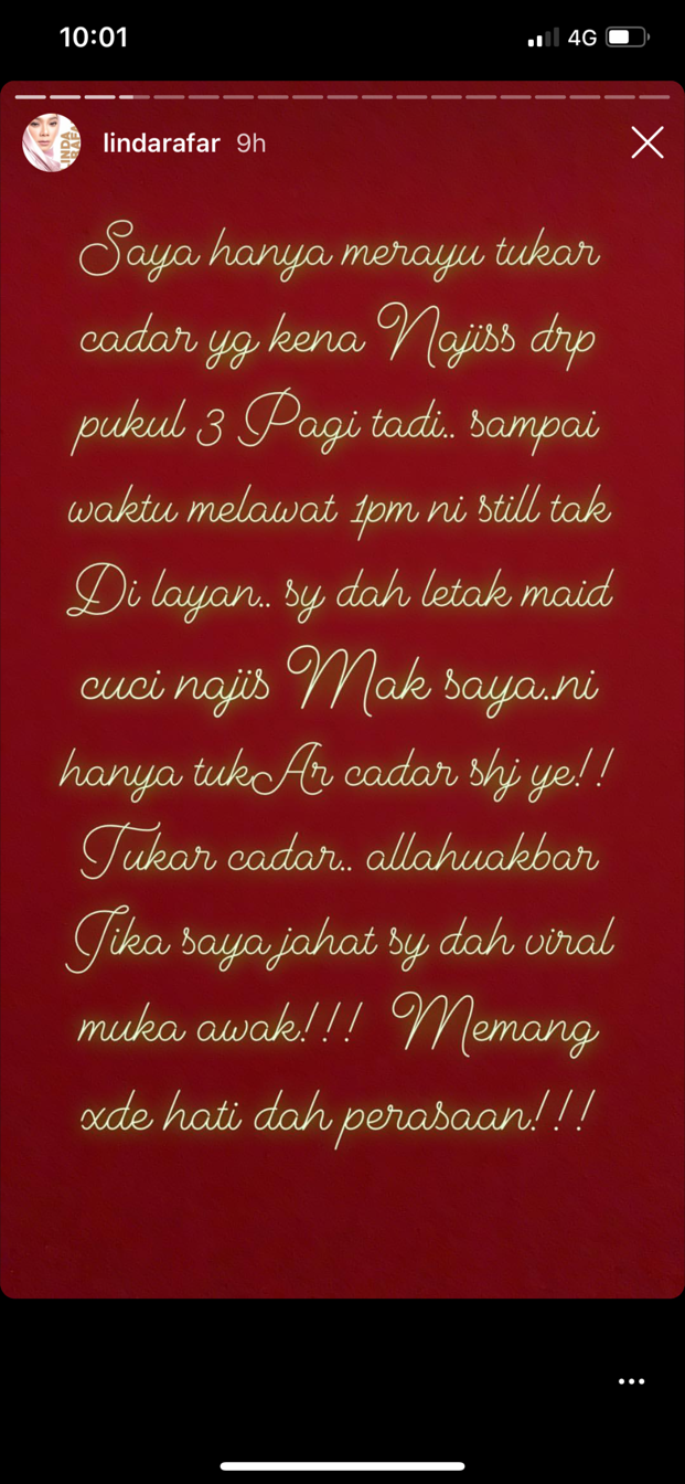 Linda berkongsi perkara tersebut di Instagram (IG) Story miliknya.