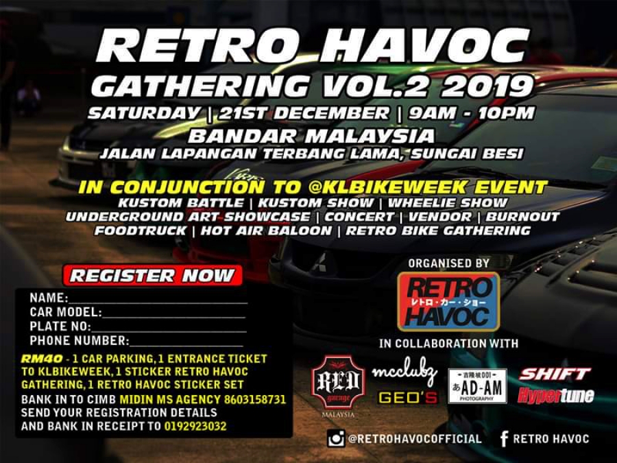 Pihak penganjur juga akan bekerjasama dengan Retro Havoc, di mana mereka akan menganjurkan Retro Havoc Gathering Vol.2 di KLBW 2019 yang bakal dihadiri sebanyak 400 kereta kategori supercar, klasik dan banyak lagi.