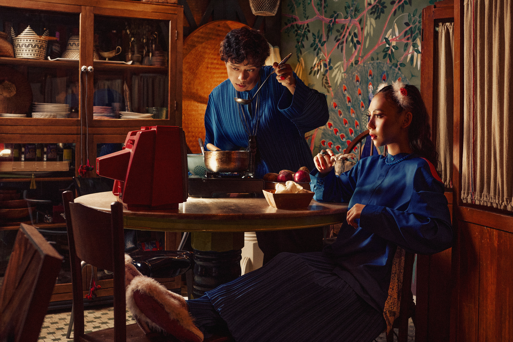 Bagi koleksi ini, anda akan menemui rekaan lipatan yang digabungkan ke dalam siluet kebaya tradisional, serta cetakan dengan rekaan uniseks berlipat dan berbutang pada bahagian atas baju bagi memberikan keselesaan pada musim Raya ini.