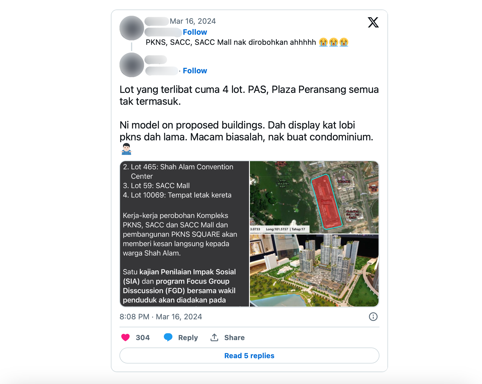 Kecoh dalam kalangan netizen baru-baru ini apabila satu hantaran di platform X tular mengenai dakwaan Kompleks PKNS dan SACC Mall Shah Alam bakal dirobohkan.