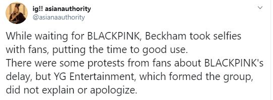 Selain itu, netizen juga melabelkan tindakan BLACKPINK itu agak biadap kerana membuatkan Beckham terpaksa menunggu kehadiran mereka.