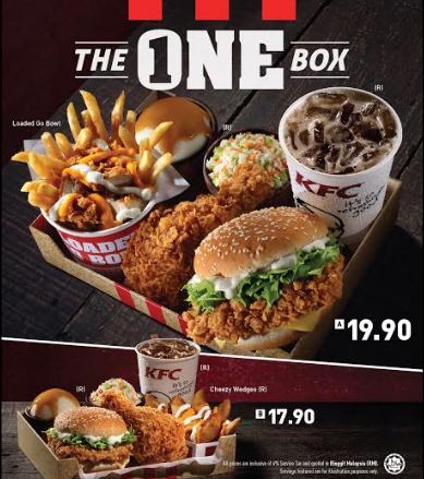 KFC kini menampilkan hidangan terbaru KFC The One Box yang mempuyai enam sajian dalam satu kotak. Ia tentu menjanjikan kepuasan kepada anda! Anda boleh menikmati pelbagai jenis makanan pada masa yang sama!
