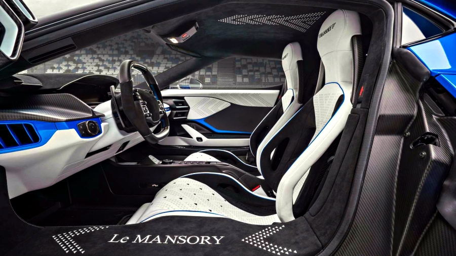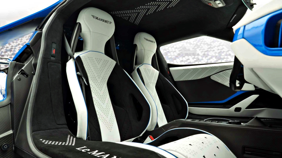 Supercar ini disaluti warna kustom iaitu Bleurion Race dan jurusolek Mansory menggunakan tekstur karbon pada bahagian depan kereta untuk menjadi kontras hiasan.
