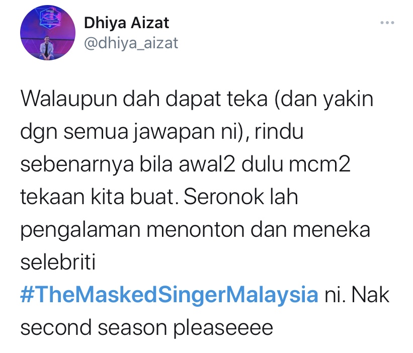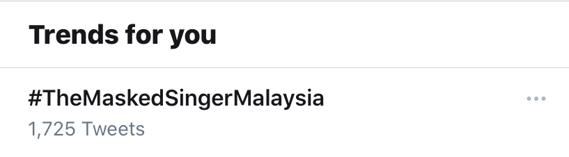 1. Hebat! The Masked Singer Malaysia trending setiap minggu di laman Twitter. Terima kasih penonton.