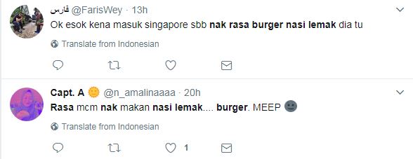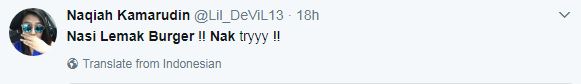 Ada yang mahukan menu Burger Nasi Lemak dijual di Malaysia dan ada juga rakyat Malaysia yang sanggup ke Singapura untuk merasa sendiri kelazatan Burger Nasi Lemak.
