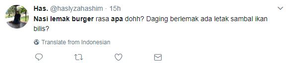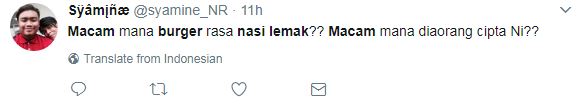 Namun begitu, pertembungan rasa antara burger dan nasi lemak yang disatukan dalam satu menu turut membuat netizen mempertikaikan kelazatan Burger Nasi Lemak.