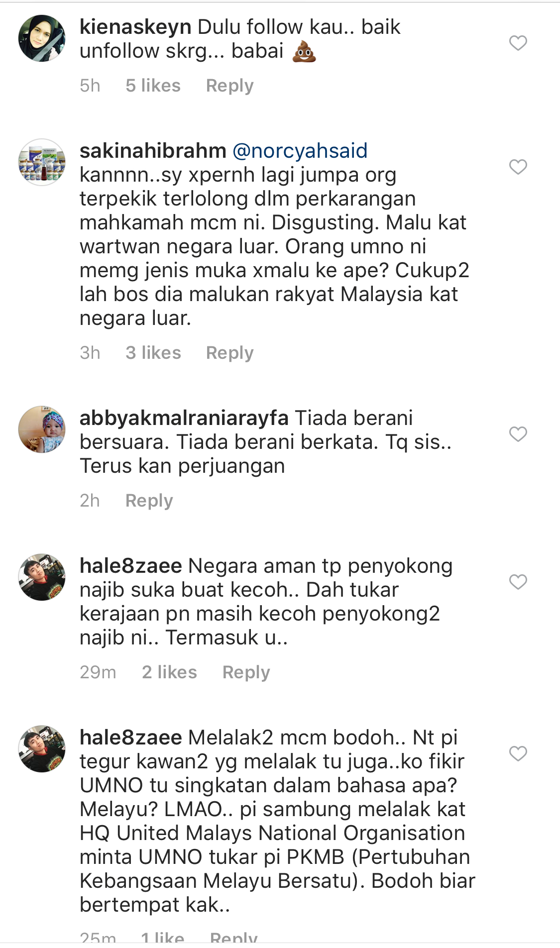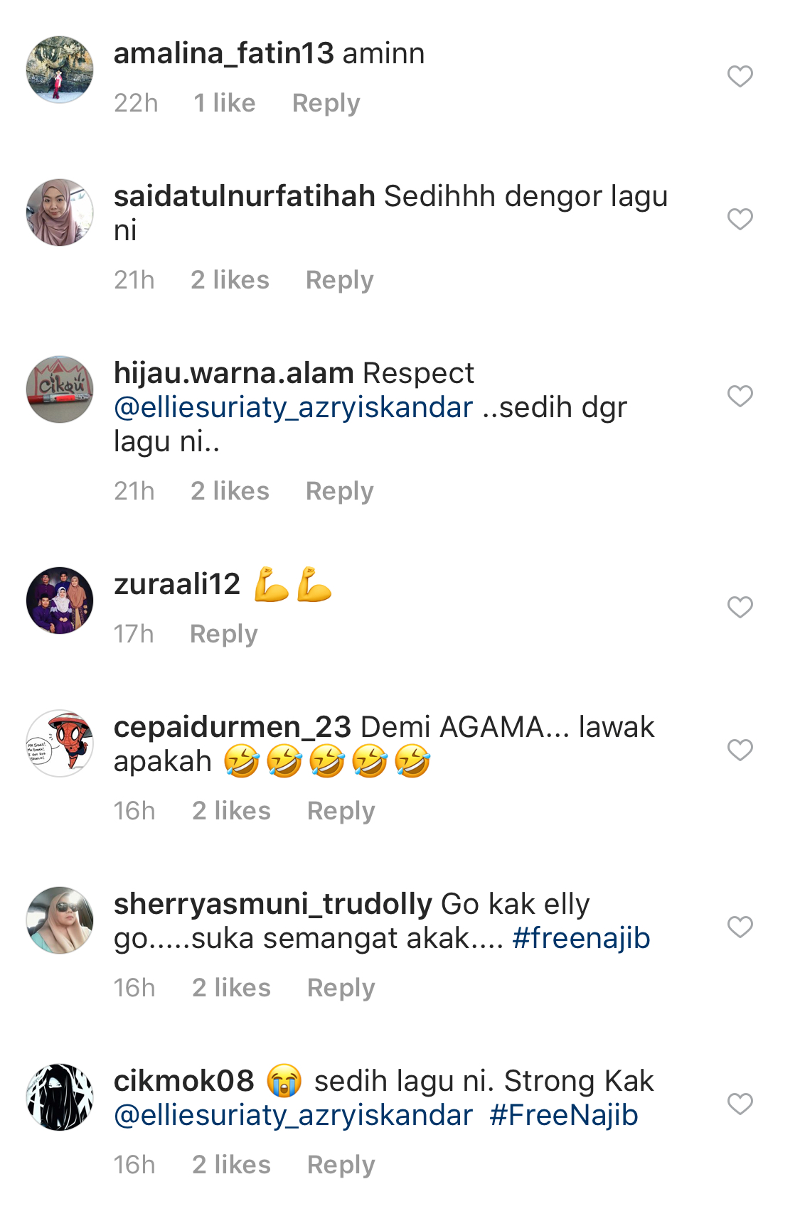 Ada juga segelintir netizen yang memuji tindakan berani Ellie yang memberi sokongan terhadap Najib.