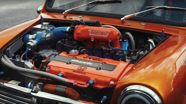 Pemiliknya membuang hud dan enjin asal untuk memuatkan seunit B16 Honda VTEC 1.6 liter dengan sambungan pengecas turbo Garrett jenis GT3076R.
