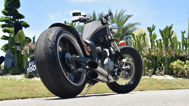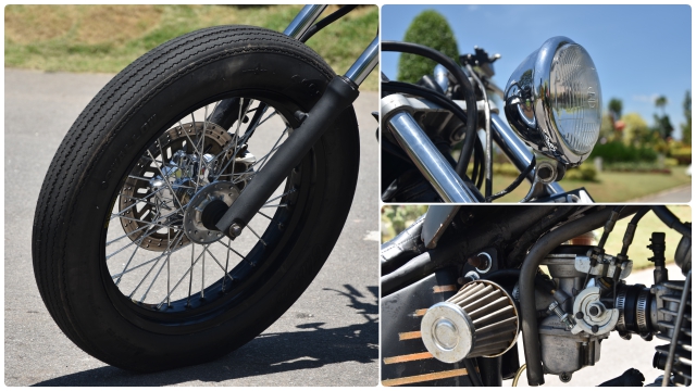 Paling menyerlah apabila penggunaan rim aloi 18 inci dengan balutan tayar Swallow Classic serta rim kereta bersaiz 17 inci dengan lebar 7 inci yang dibalut tayar motosikal.