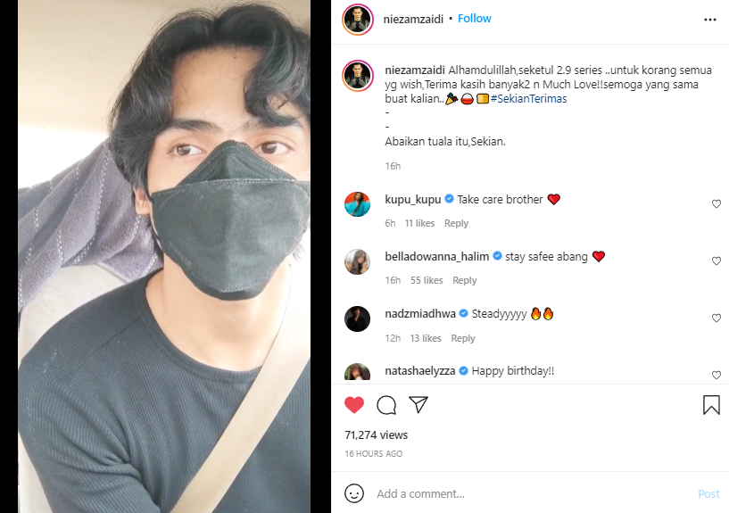 Pelakon Niezam Zaidi tampil mengemaskini hantaran terbaharu Instagramnya dengan memuat naik video pendek pada Selasa.
