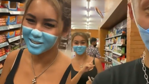 Josh Paler Lin yang berasal daripada Taiwan serta Leia Se atau lebih dikenali sebagai Lisha daripada Rusia bertindak mengecat muka seolah memakai pelitup muka dan cuba memasuki sebuah pasar raya.