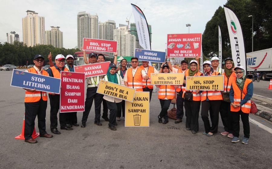 Sukarelawan juga mempamerkan papan tanda berwarna-warni yang memaparkan mesej-mesej anti-sampah, manakala sepanduk dan gegantung ditempatkan dengan jelas untuk menarik perhatian pemandu yang keluar dari plaza tol itu.