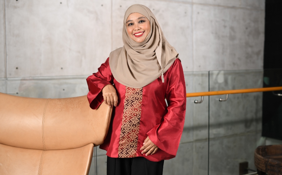 Menariknya, busana anggun ini menampilkan motif bercorak batik Borneo yang menyerlahkan lagi keanggunan si pemakai yang mementingkan keselesaan.