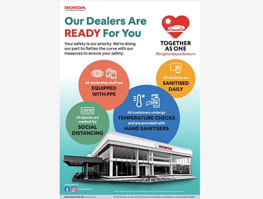 Pada masa sama, Honda Malaysia mengambil langkah keselamatan di tempat pusat servis mereka membabitkan: