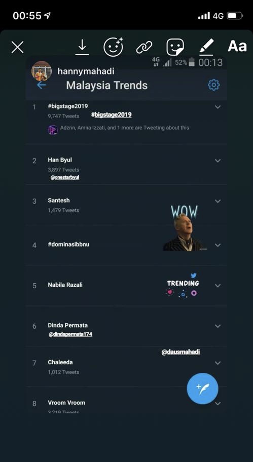 Program realiti Big Stage 2019 menjadi perhatian apabila trending di laman Twitter sejurus bermulanya persembahan untuk minggu kedua.