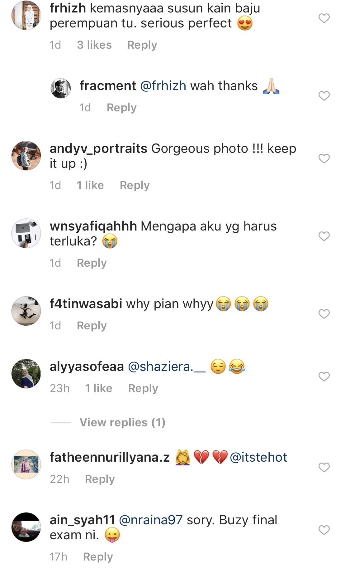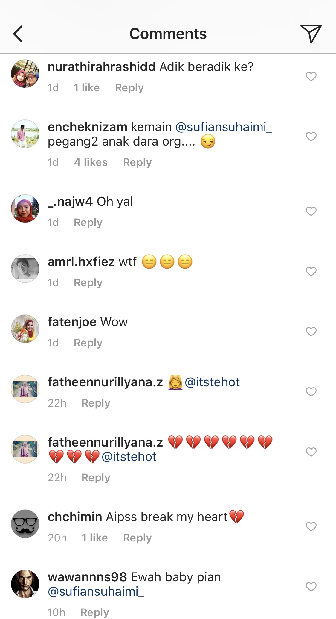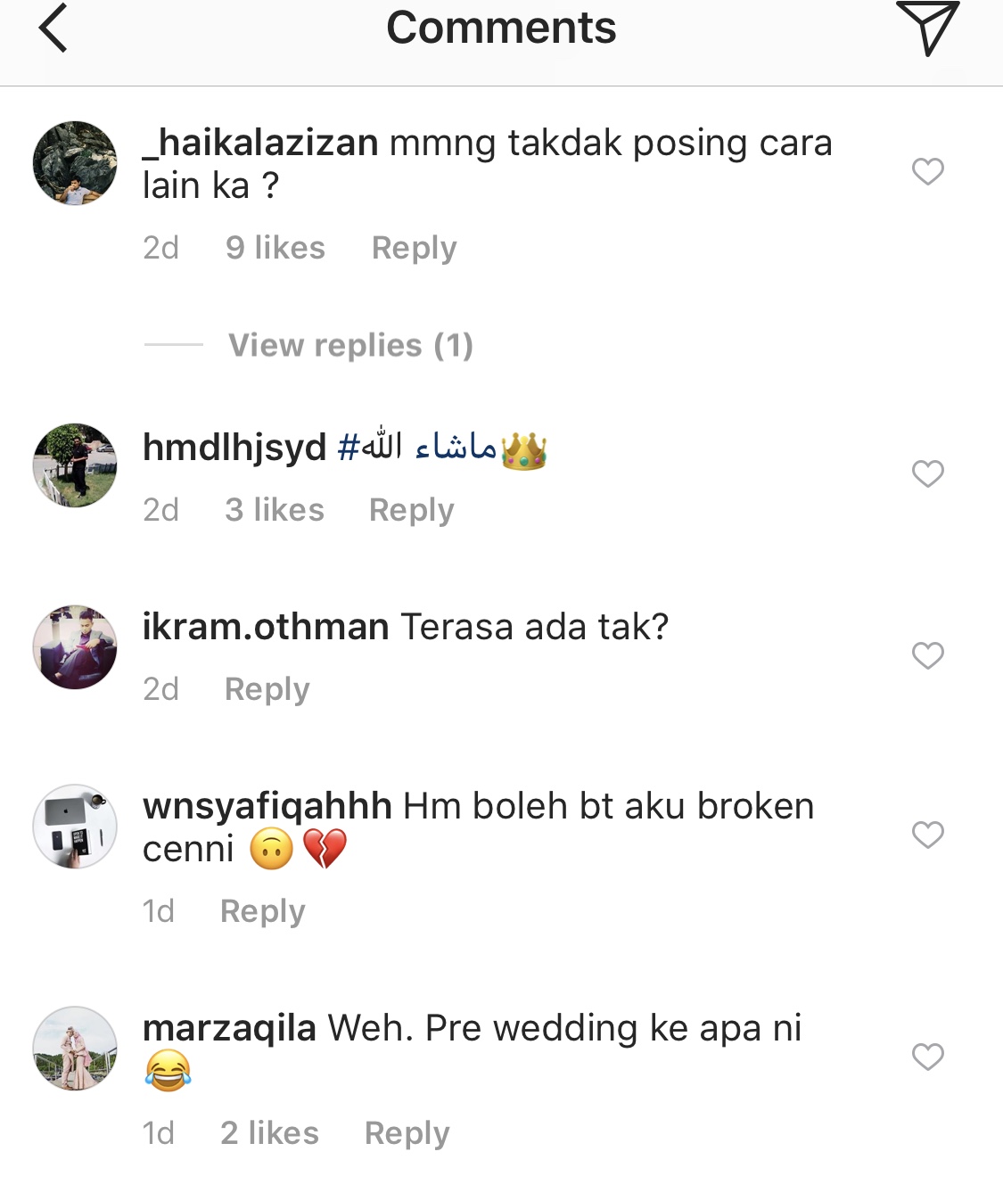 Tidak kurang juga ada peminat yang meluahkan rasa cemburu di ruangan komen.