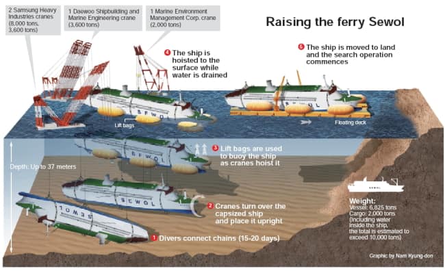 Berapa lama Feri Sewol di permukaan laut sebelum benar-benar tenggelam?