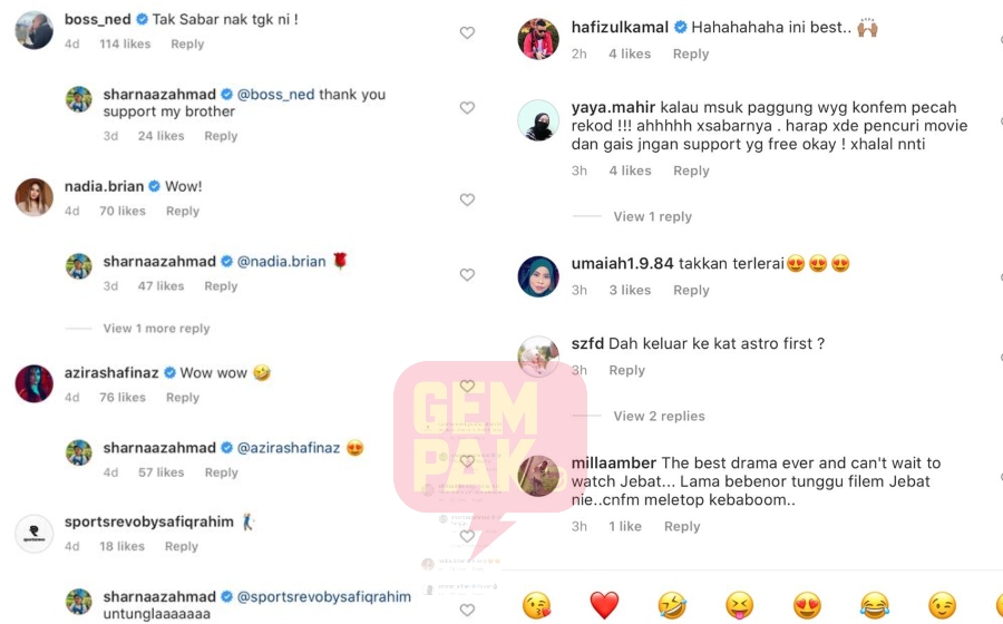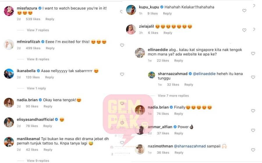 Di ruangan komen Instagram Sharnaaz dan Nelydia, cukup ramai rakan artis yang mengakui teruja untuk menonton sendiri filem yang mendapat sentuhan pengarah Jamal Khan itu.