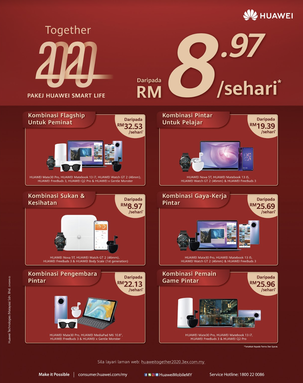 Untuk membuat pembelian dan maklumat lanjut, sila layari https://huaweitogether2020.3ex.com.my/