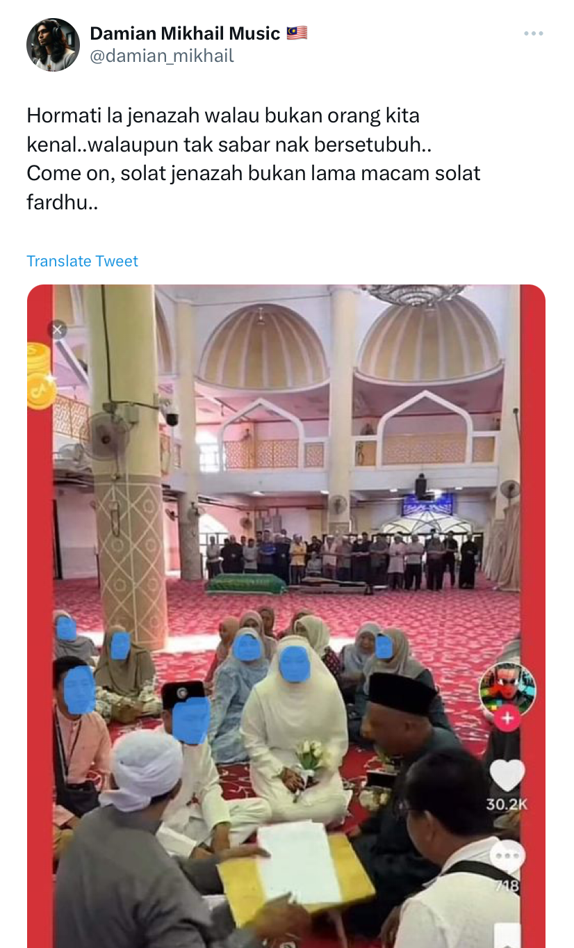 Bekas anggota kumpulan VE, Damien Mikhail dikritik selepas membuat ‘kesimpulan’ melulu terhadap sekeping gambar pasangan pengantin yang bernikah di masjid yang turut menjadi lokasi bagi solat jenazah.