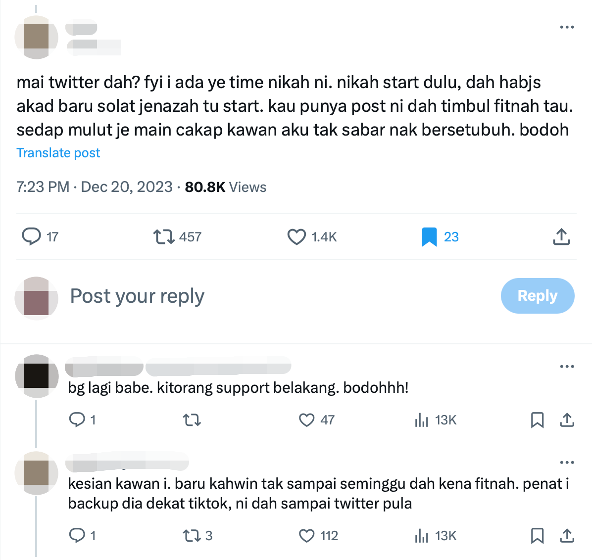 Namun, kenyataan Damien menimbulkan amarah dalam kalangan pengguna platform X. Menerusi hantaran yang dibuat oleh sahabat pengantin, difahamkan solat jenazah bermula hanya selepas majlis akad nikah selesai.