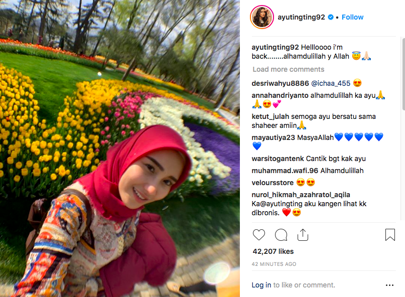 "Hello, i'm back. Alhamdulillah ya Allah," tulis Ayu Ting Ting di unggahan terbarunya sekitar 50 menit lalu.