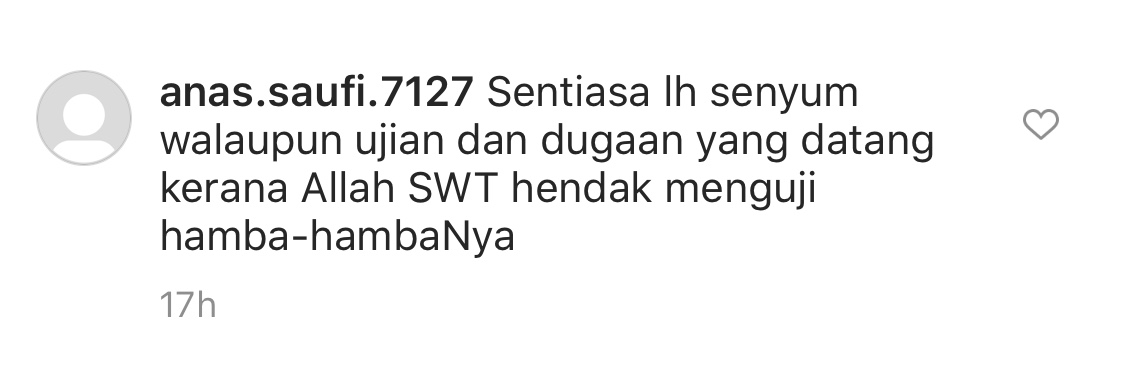 Malah, ada juga yang menasihati Elfira untuk sentiasa kuat ketika berhadapan dengan ujian Allah SWT.