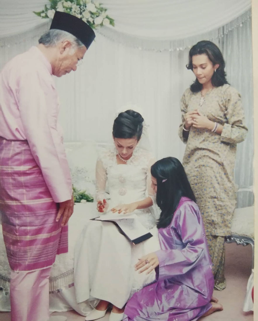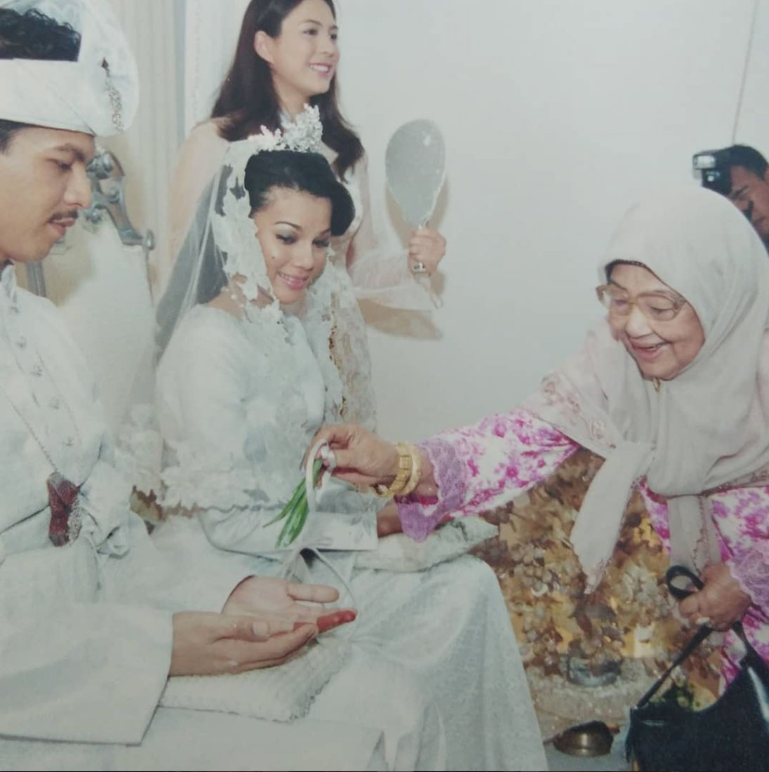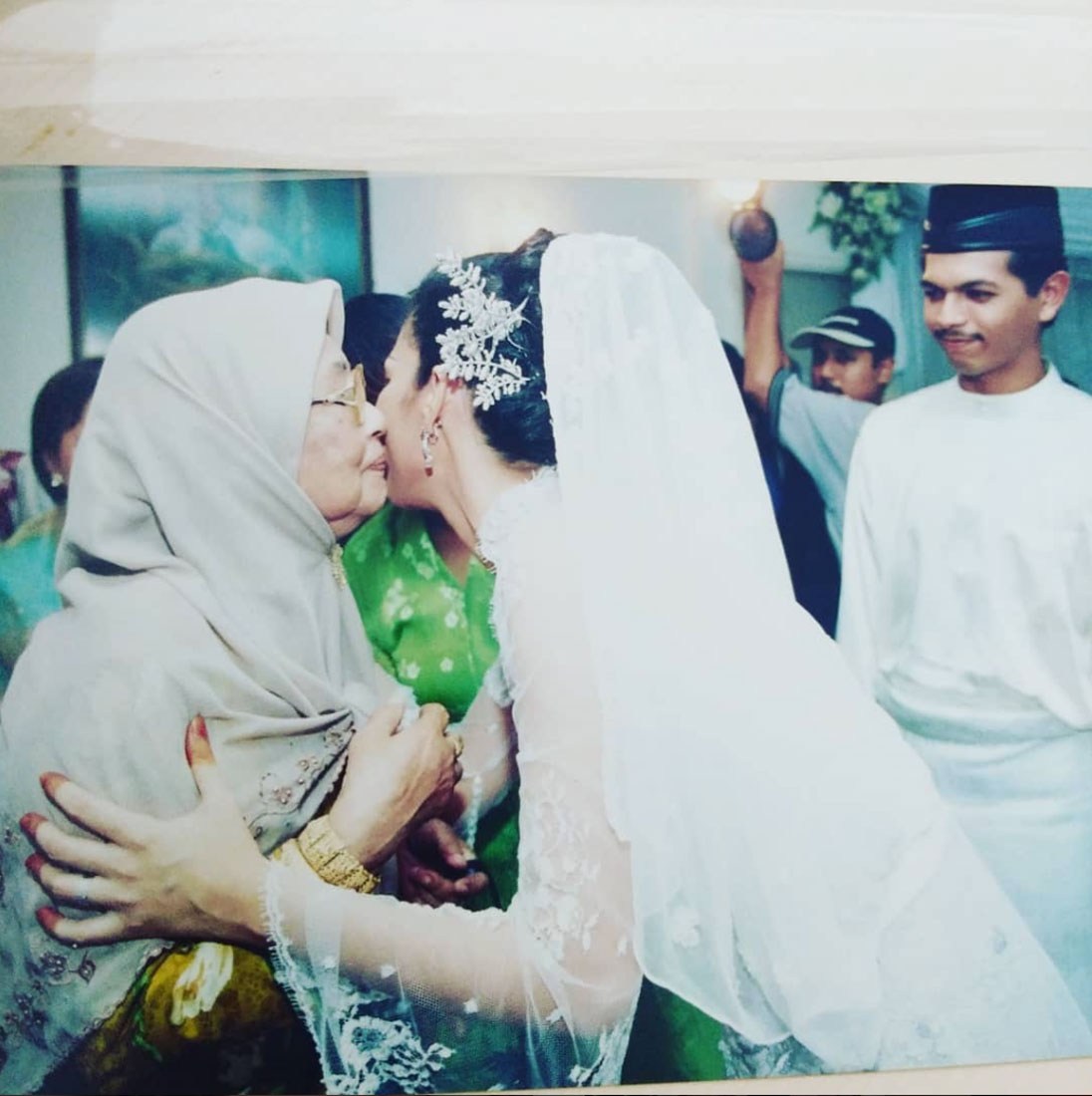 Lepas nikah, cium nenek mertua. Masa ni arwah Mak Esah umur 73 tahun. Sejak tu bermulalah Mak Esah telefon nak jalan, 15 tahun juga dengan kerenah kami, teman gaduh… hahahaha. Al-Fatihah.