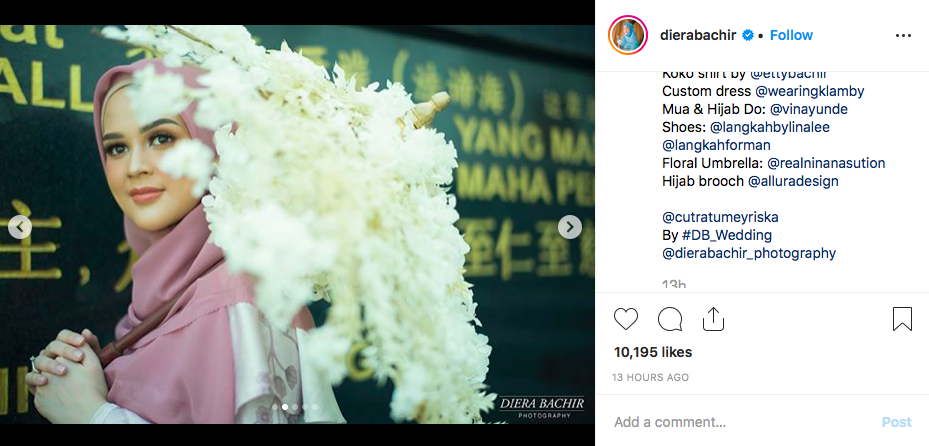 Tidak hanya Diera, Doley Tobing sebagai fashion stylish pasangan itu juga mengunggah foto Cut Meyriska di akun Instagramnya.