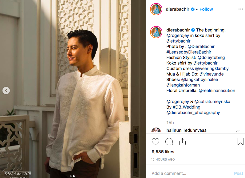 Dia pun tak segan segan menuliskan: "Al Fatihah, The Beginning @rogerojey & @cutratumeyriska. Prewedding Photoshoot."