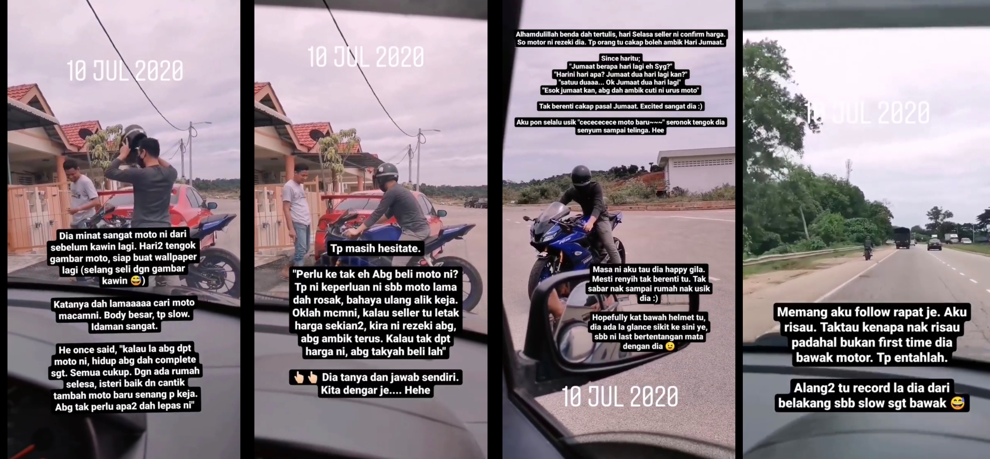 "Tapi masih teragak-agak. Perlu ke tak eh abang beli motosikal ni? Tapi ni keperluan ni sebab motosikal lama dah rosak, bahaya ulang alik kerja.