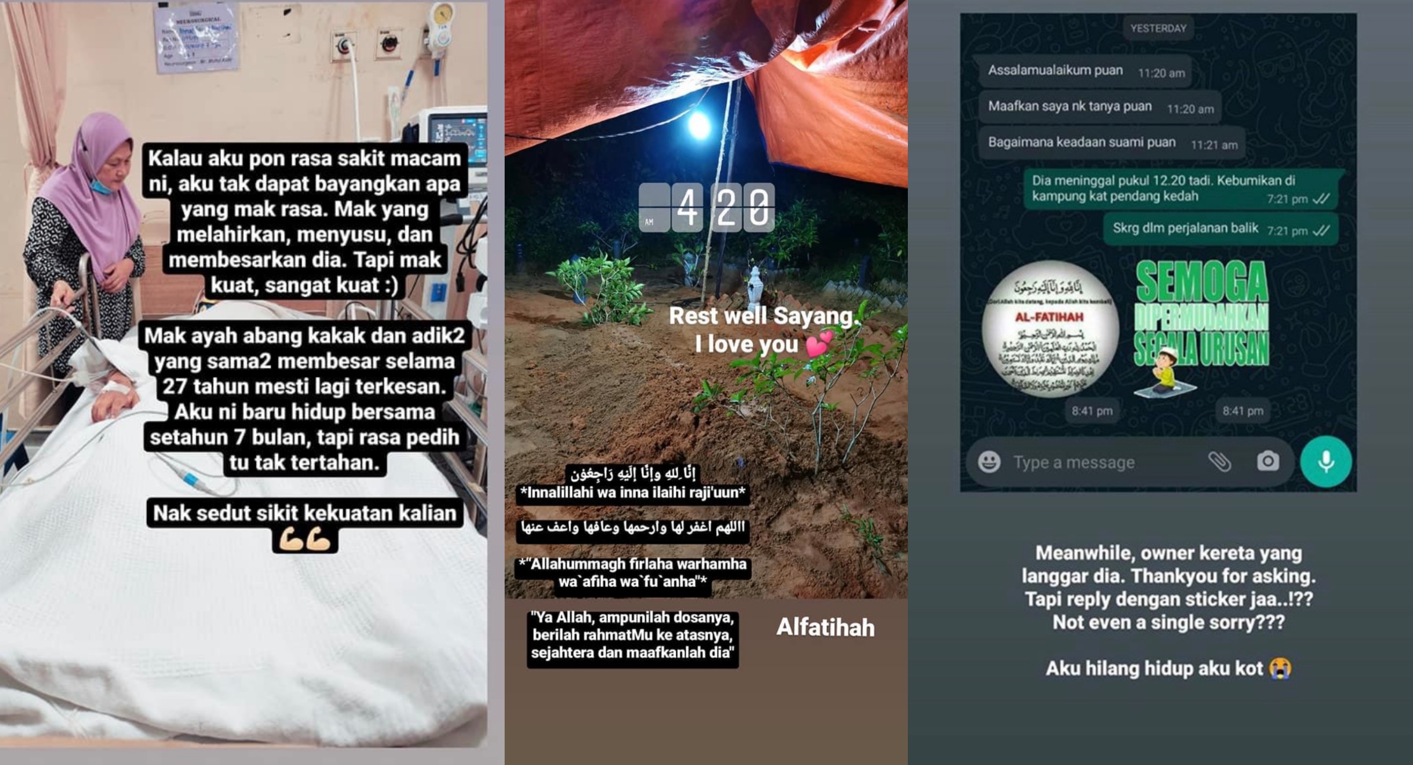 "Terlalu cepat. Selepas 24 jam, aku kena terima kenyataan yang dia dah tiada. Setakat ni ja jodoh kami. Semoga kembali berjodoh di syurga.