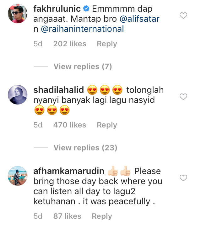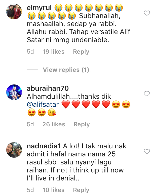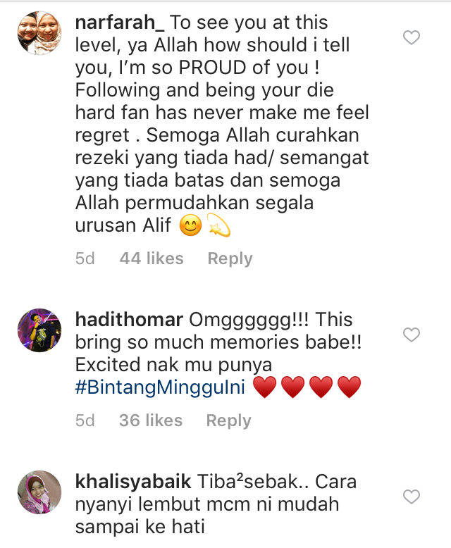 "The lil 7 year old in me was screaming inside, thank you Raihan. JUST VOLUME UP," tulis Alif berkongsi menerusi Instagramnya.