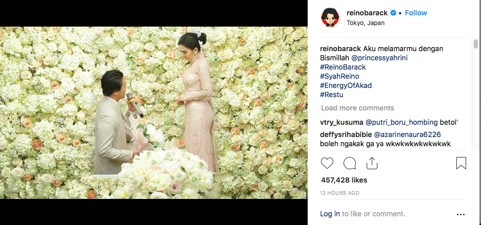 Mantan Luna Maya itulah yang dilihat mengunggah foto tersebut terlebih dahulu. Reino menulis pada captionnya: "Aku melamarmu dengan Bismillah."