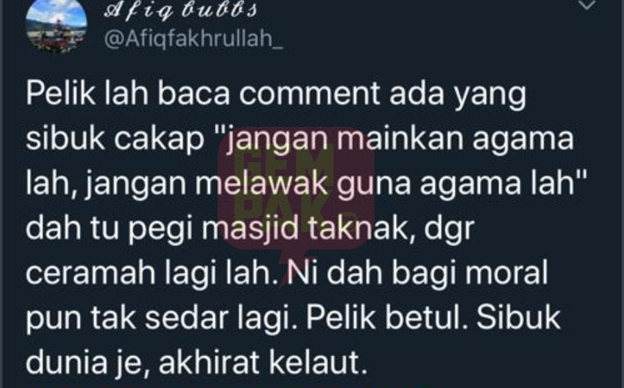 "Ada yang belajar sepenuh hati, ada yang belajar main-main. Bila belajar tidak sungguh-sungguh maka ilmu pun sekelumit sahaja," tulisnya.