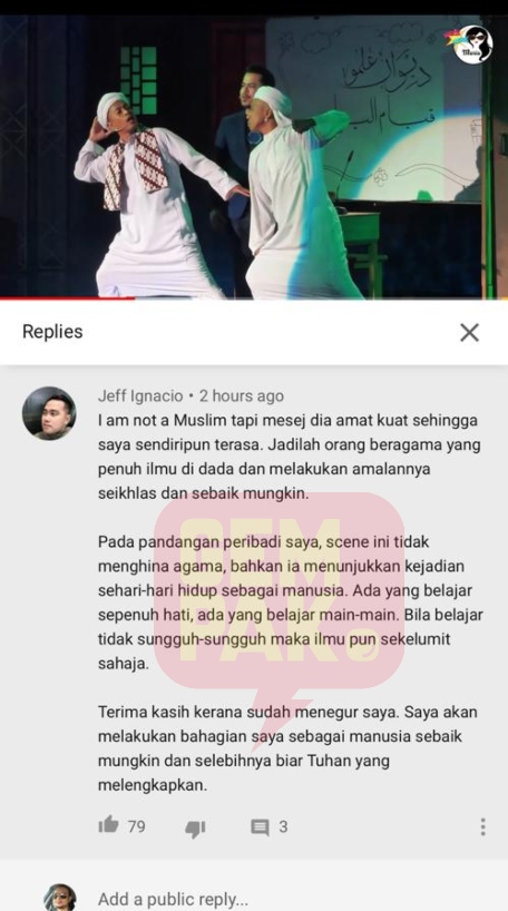 "Pandangan peribadi saya, babak ini tidak menghina agama bahkan ia menunjukkan kejadian seharian kehidupan seorang manusia.