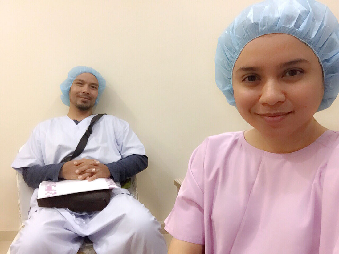 Beberapa minit sebelum prosedur Embryo Transfer dilakukan. Suami agak gementar menemani.
