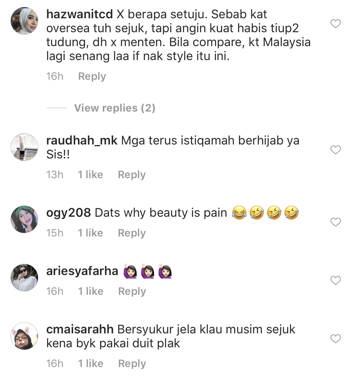 “ If only 4 musim, sure dah stylo dah hijab girls kat malaysia ni! Siapa sokong angkat tangan!,” tulisnya